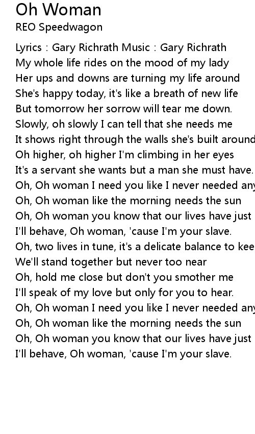 | Oh, Oh woman I need you like I never needed anyone | |