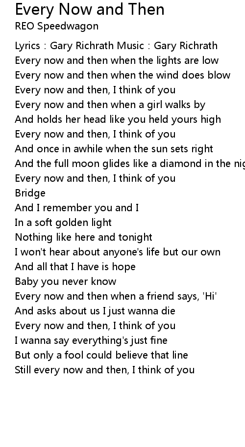 | Every now and then, I think of you | |