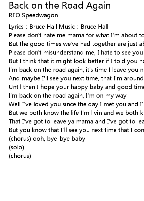 | I' m back on the road again, it' s time I leave you now | |