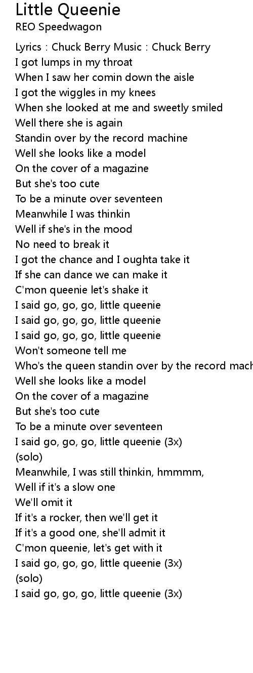 | I said go, go, go, little queenie 3x | |