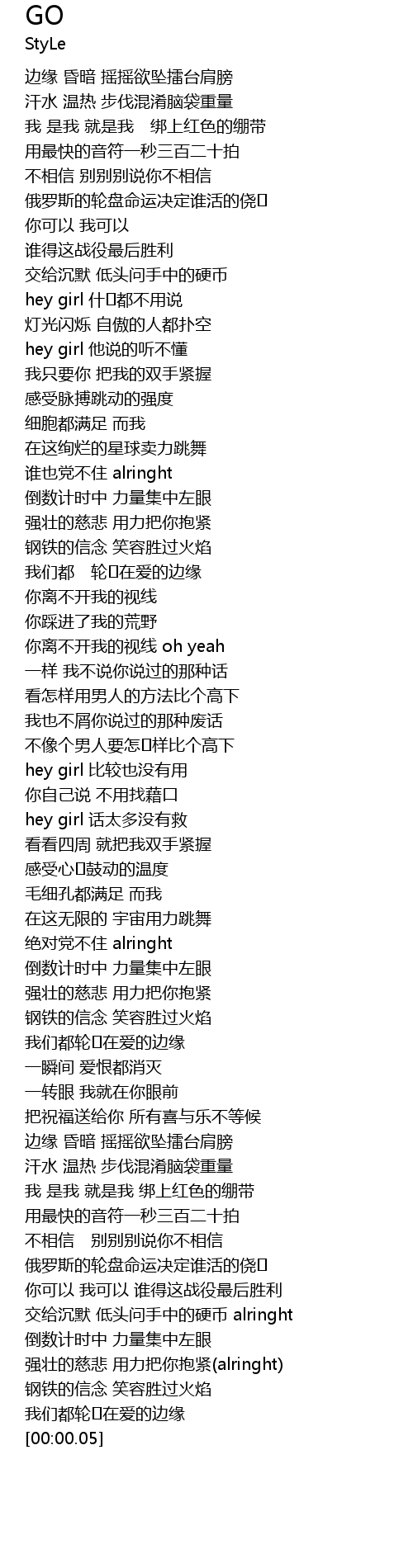 | [01:34.72] | hey girl bǐ jiào yě méi yǒu yòng |