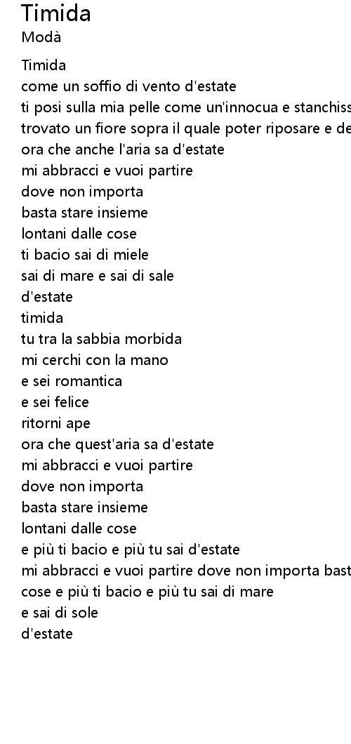 | mi abbracci e vuoi partire dove non importa basta stare insieme lontani dalle cose e piu ti bacio e piu tu sai di mare | |