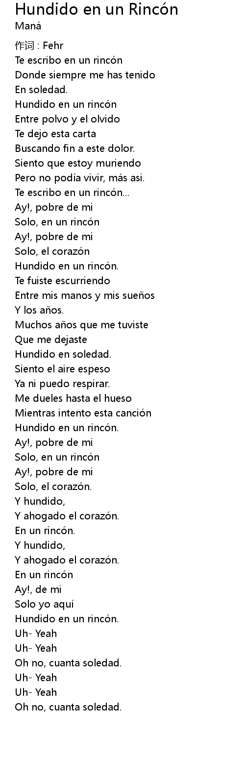 | Song | Hundido en un Rincón |