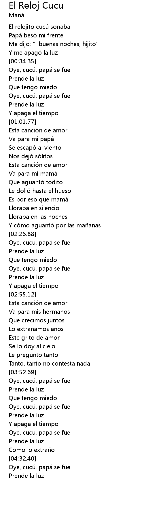 | [00:50.23] | Oye, cucú, papá se fue |