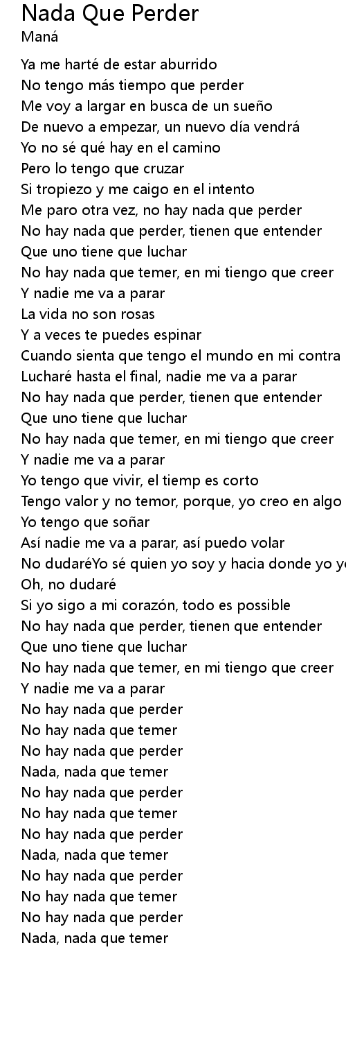 | Song | Nada Que Perder |