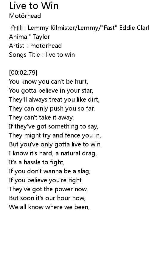 | [00:01.96] | Songs Title:live to win |