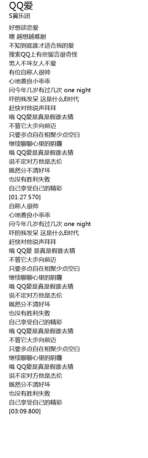 | [00:53.300] | 哦 QQ愛是真是假谁去猜 |