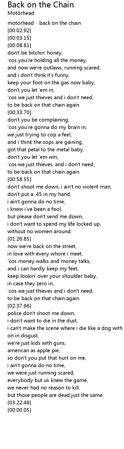 | [00:01.33] | motorhead - back on the chain |