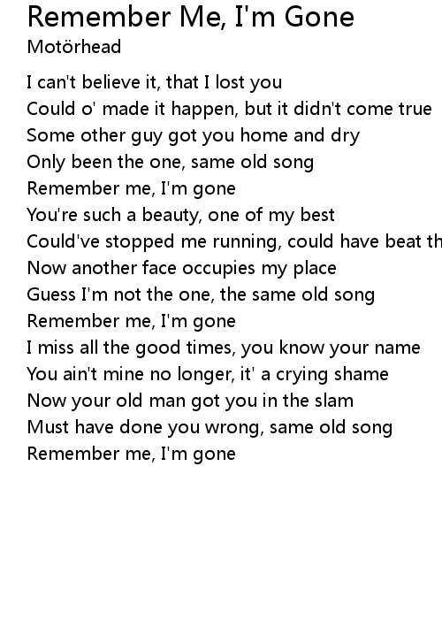 Remember me, I'm gone |
