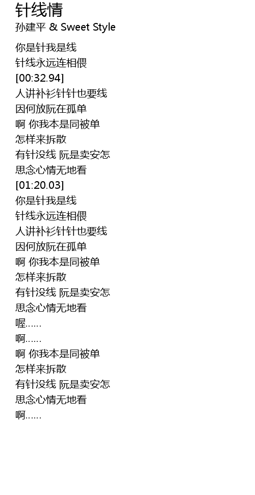 | [01:51.96] | 针线永远连相偎 |