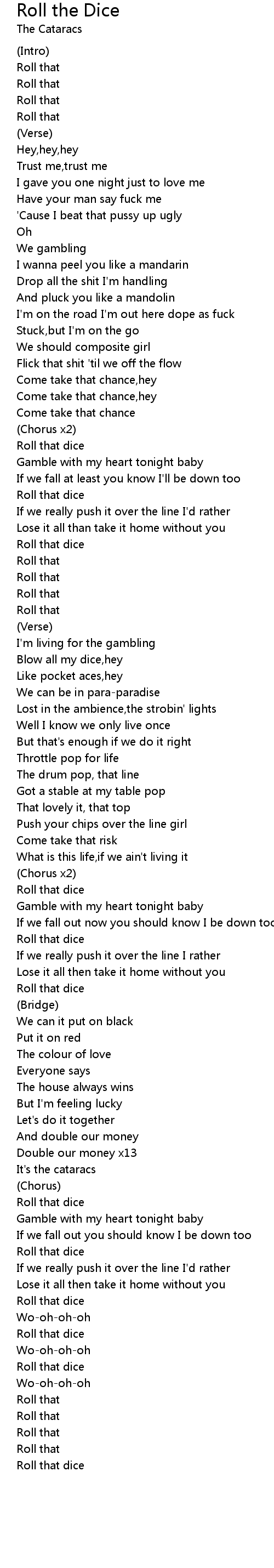 Blow all my dice,hey |