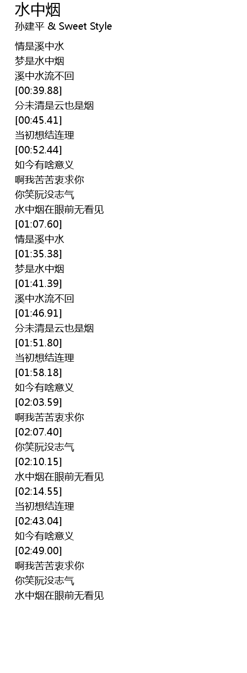 | [02:55.76] | shuǐ zhōng yān zài yǎn qián wú kàn jiàn |