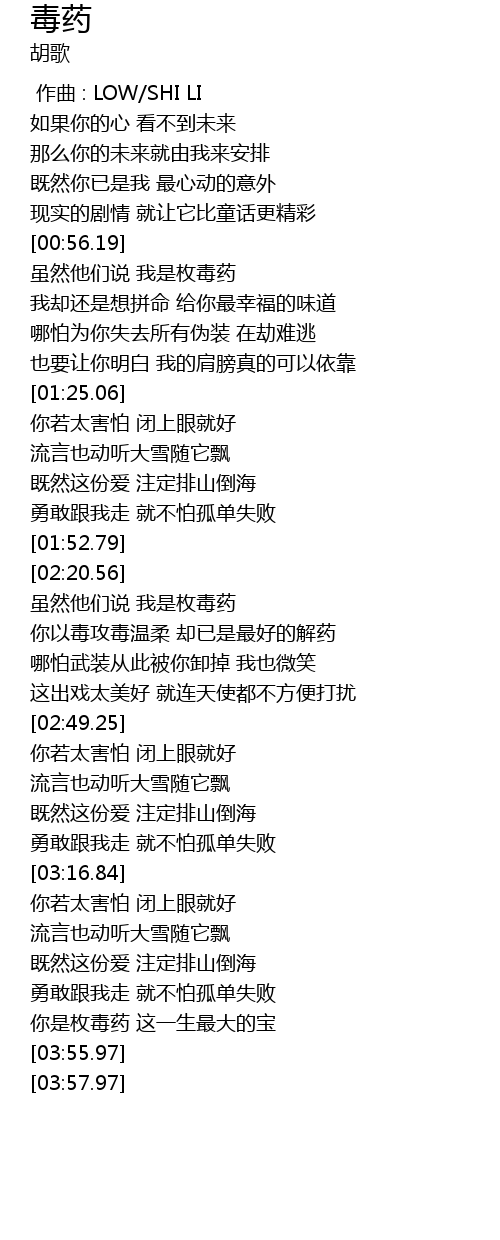 | [00:57.67] | 虽然他们说 我是枚毒药 |