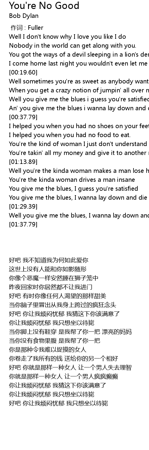 | [01:29.79] | Well you give me the blues, I wanna lay down and die |