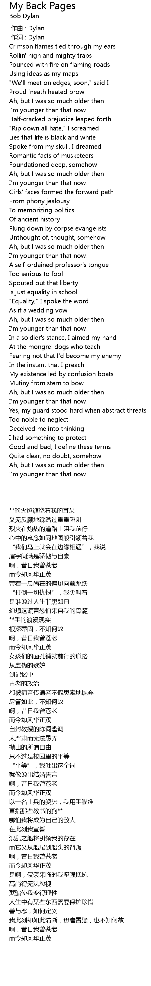| Song | My Back Pages |