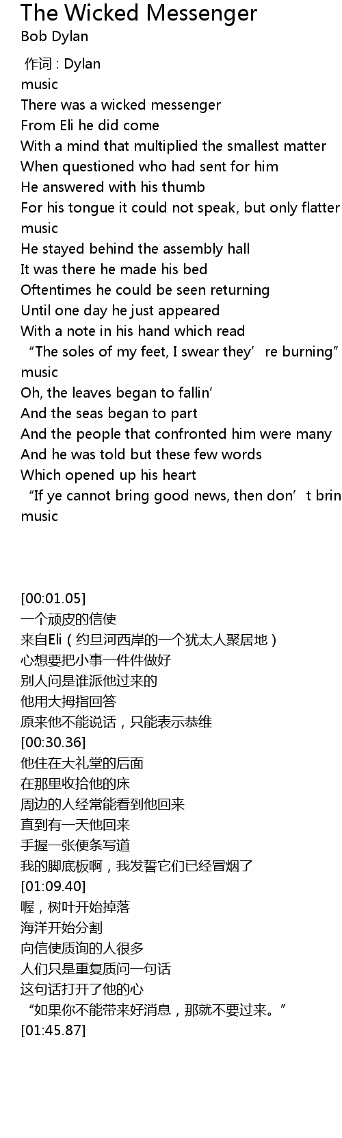 | [01:43.11] | " If ye cannot bring good news, then don' t bring any" |