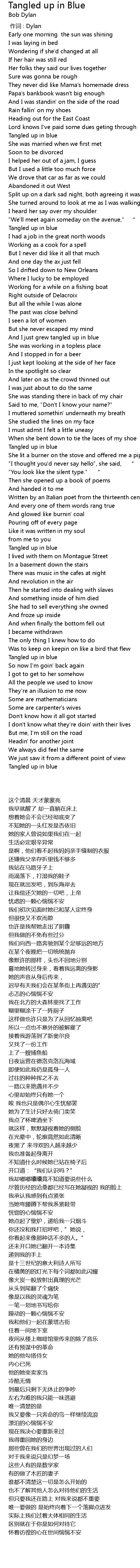 | [02:49.877] | Tangled up in blue |