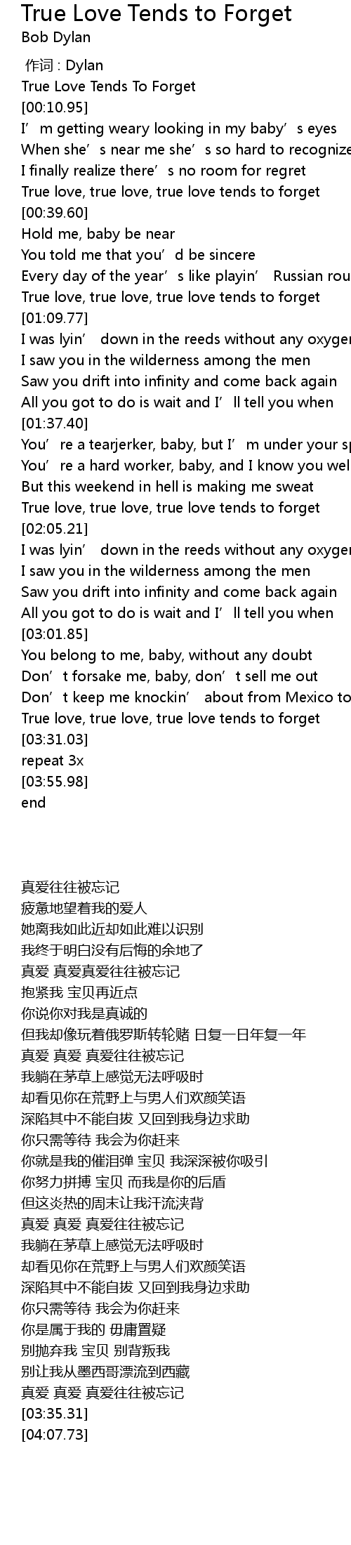 | [00:31.09] | True love, true love, true love tends to forget |