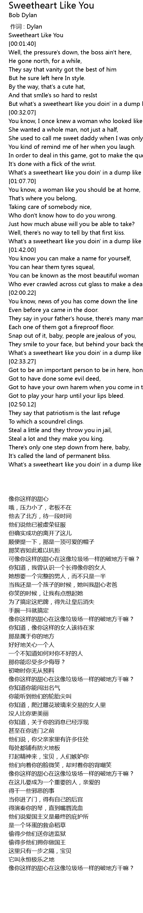 | [03:17.45] | What' s a sweetheart like you doin' in a dump like this? |