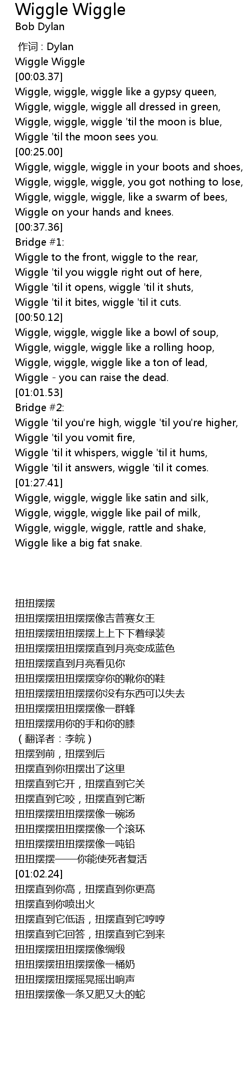 | [01:33.42] | Wiggle, wiggle, wiggle, rattle and shake, |
