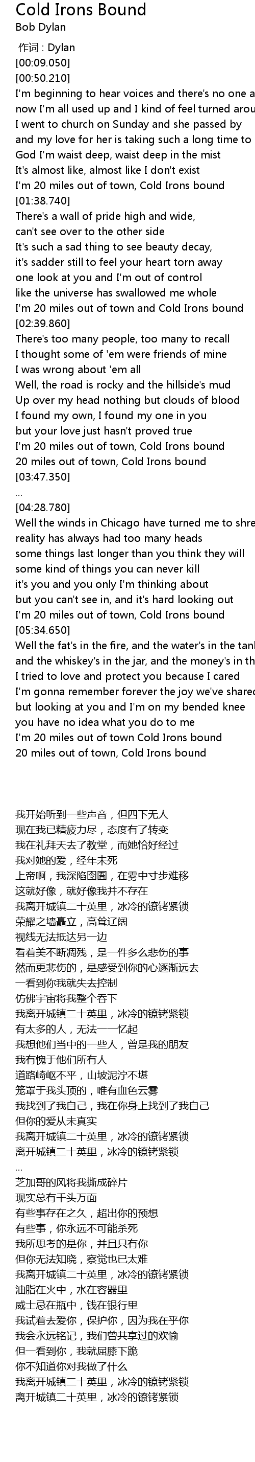 | [06:34.120] | I' m 20 miles out of town Cold Irons bound |