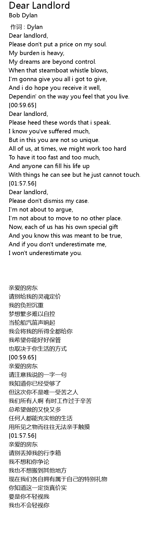 | [00:13.51] | Dear landlord, |