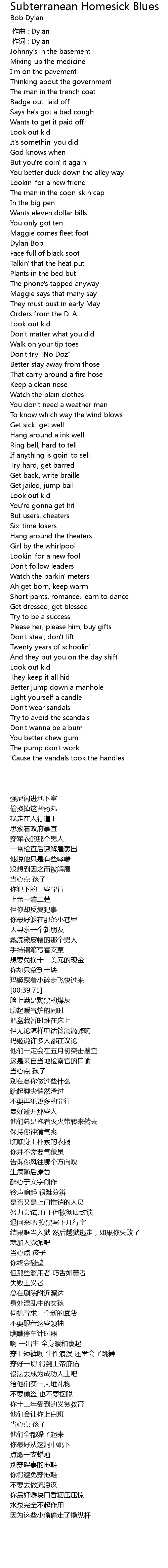 | [00:01.00] | zuo ci : Dylan |