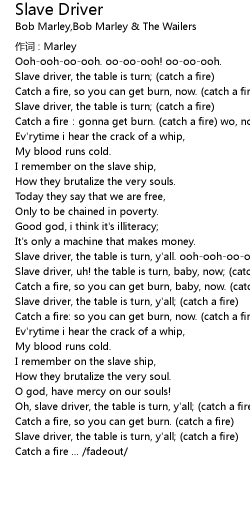 | Slave driver, uh! the table is turn, baby, now catch a fire | |