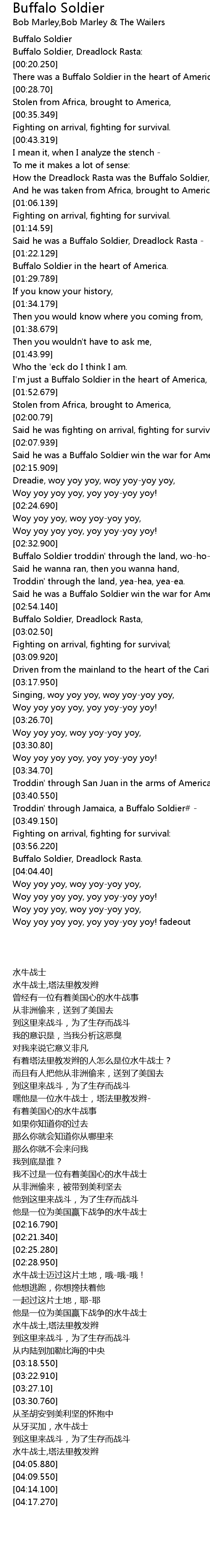 | [03:58.120] | Buffalo Soldier, Dreadlock Rasta. |