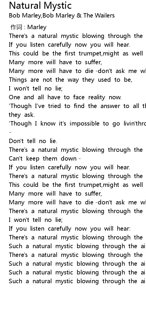 | [01:56.434] | There' s a natural mystic blowing through the air. |