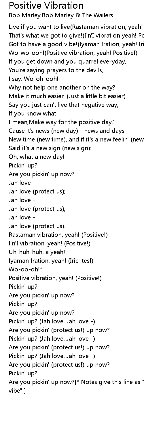 Wo-wo-ooh!(Positive vibration, yeah! Positive!) |
