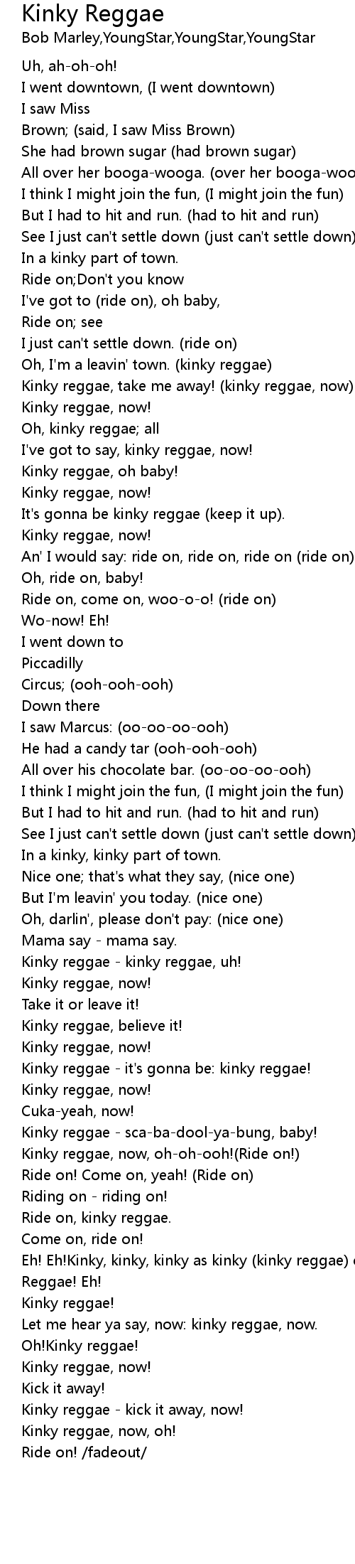 Kinky reggae, now, oh-oh-ooh!(Ride on!) |