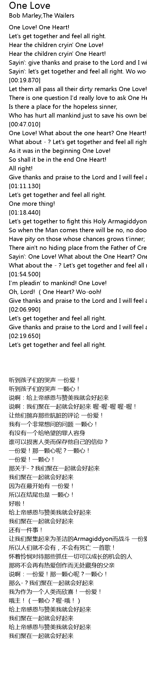 | [00:47.700] | One Love! What about the one heart? One Heart! |