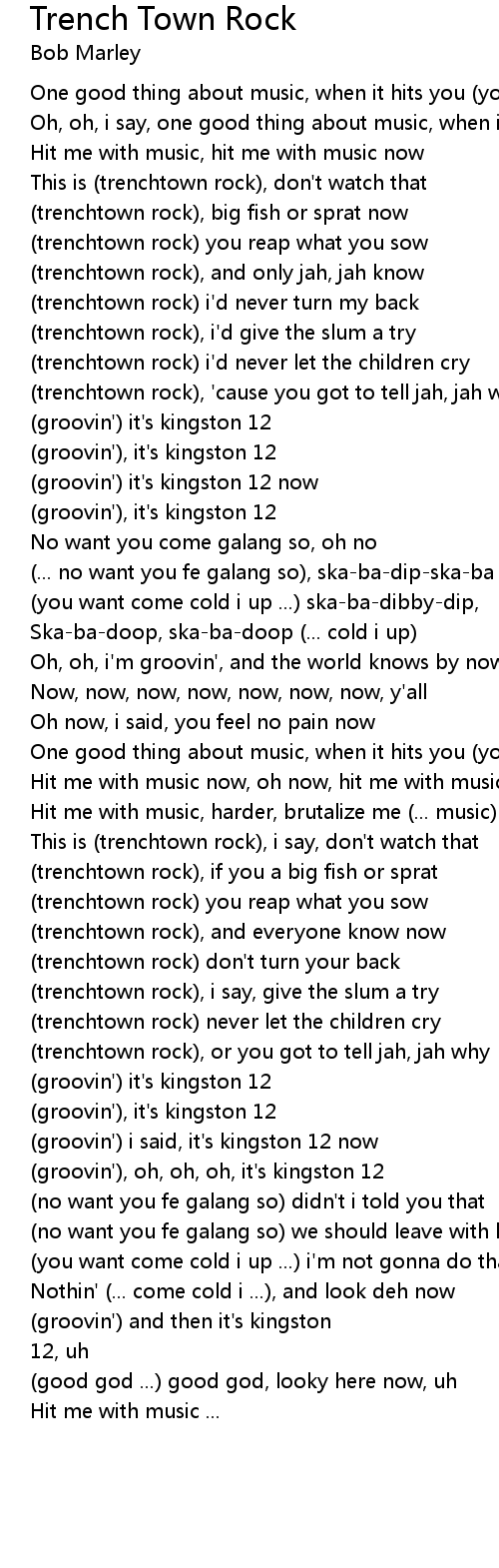 | trenchtown rock, ' cause you got to tell jah, jah why | |
