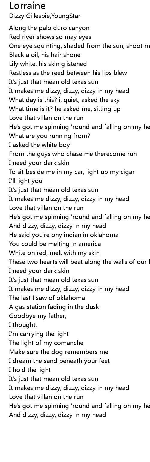 And dizzy, dizzy, dizzy in my head |