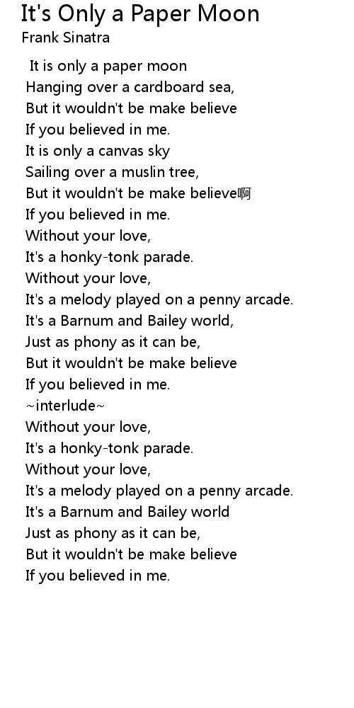 | Song | It's Only a Paper Moon |