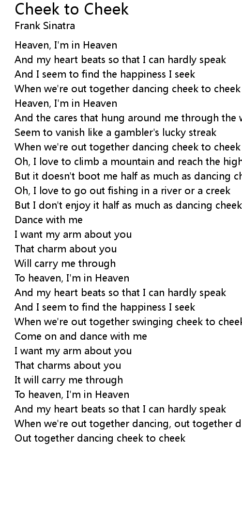 But I don't enjoy it half as much as dancing cheek to cheek |