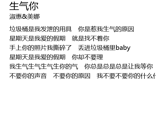 | wǒ shēng qì shēng qì shēng qì shēng nǐ de qì nǐ zǒng shì zǒng shì zǒng shì ràng wǒ děng nǐ | |