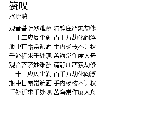 | 观音菩萨妙难酬 清静庄严累劫修 | |