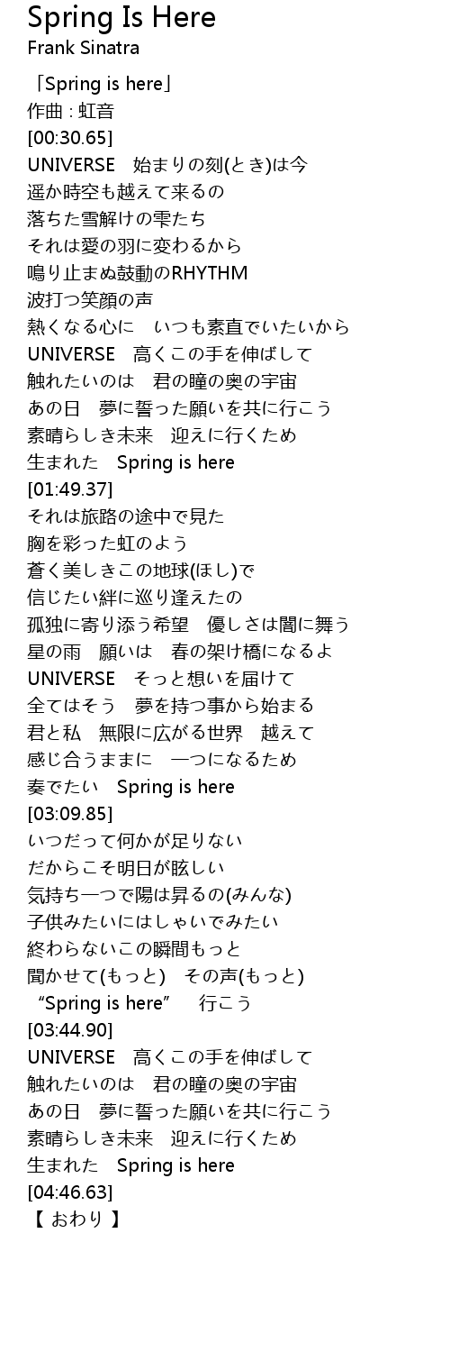 | [02:34.40] | UNIVERSE そっと想いを届けて |