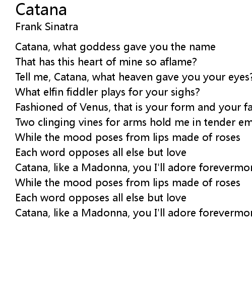 Catana, like a Madonna, you I'll adore forevermore |