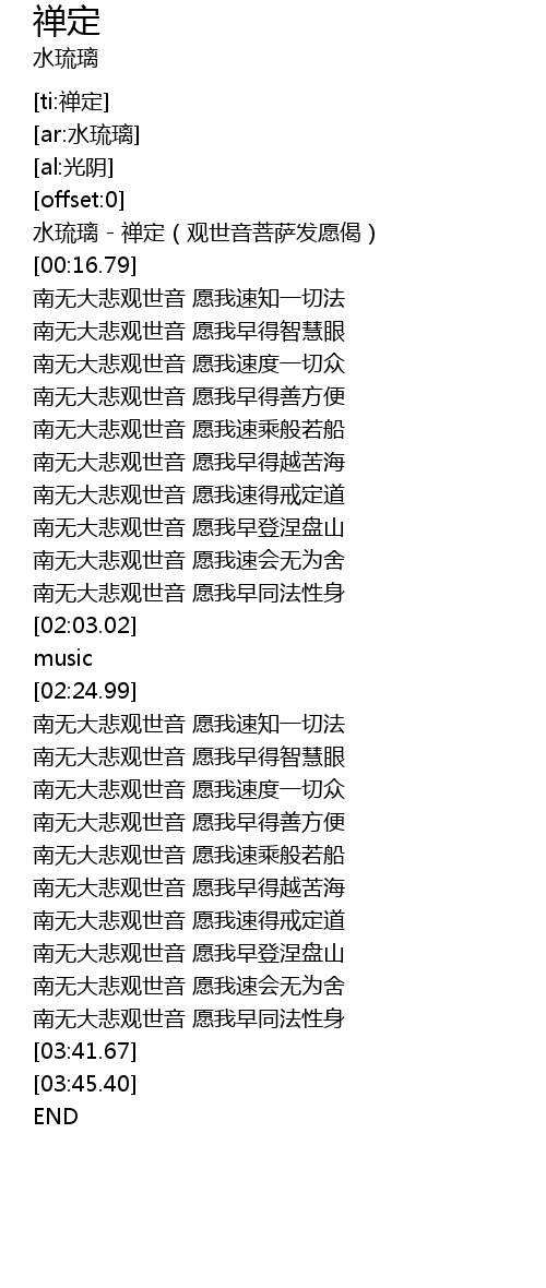 | [00:01.66] | 水琉璃 - 禅定(观世音菩萨发愿偈) |