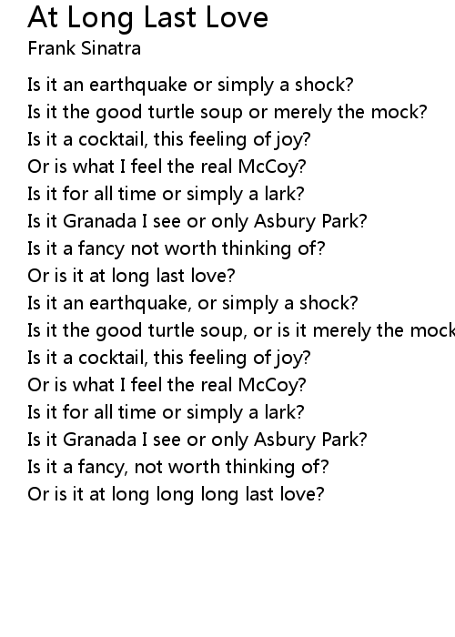 Or is it at long long long last love? |