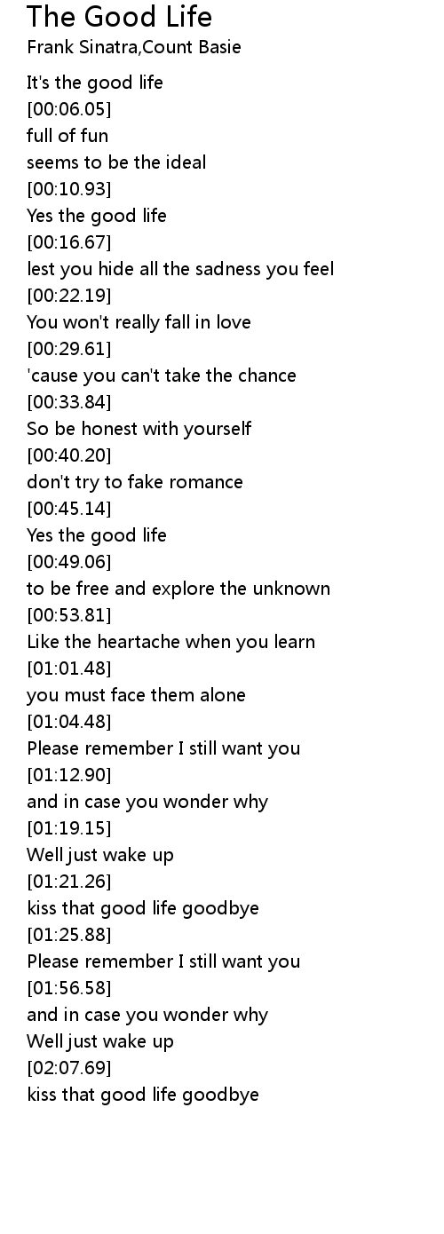 Yes the good life |