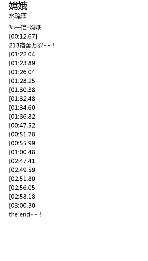| [03:13.13][02:56.05][02:04.59][01:13.22] | wo shuo wo shuo chang e jie jie |