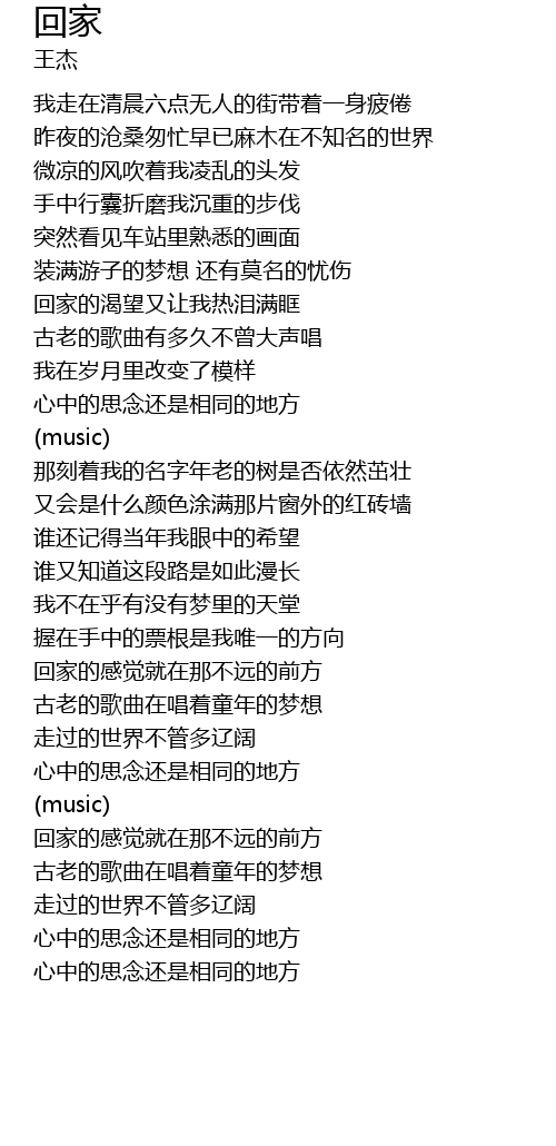 | [01:36.700] | 回家的渴望又让我热泪满眶 |