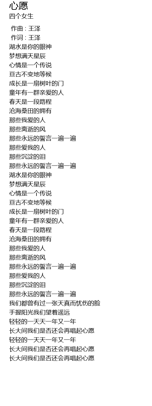 | [02:25.250] | 长大间我们是否还会再唱起心愿 |