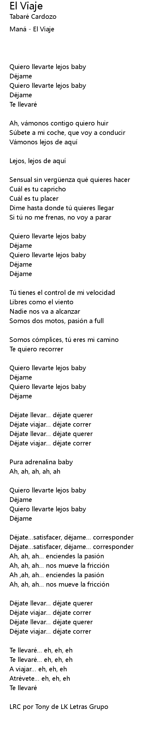 | LRC por Tony de LK Letras Grupo |