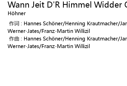 | [00:00.000] | zuò cí : Hannes Sch ner Henning Krautmacher Janus Fr hlich Peter WernerJates FranzMartin Willizil |