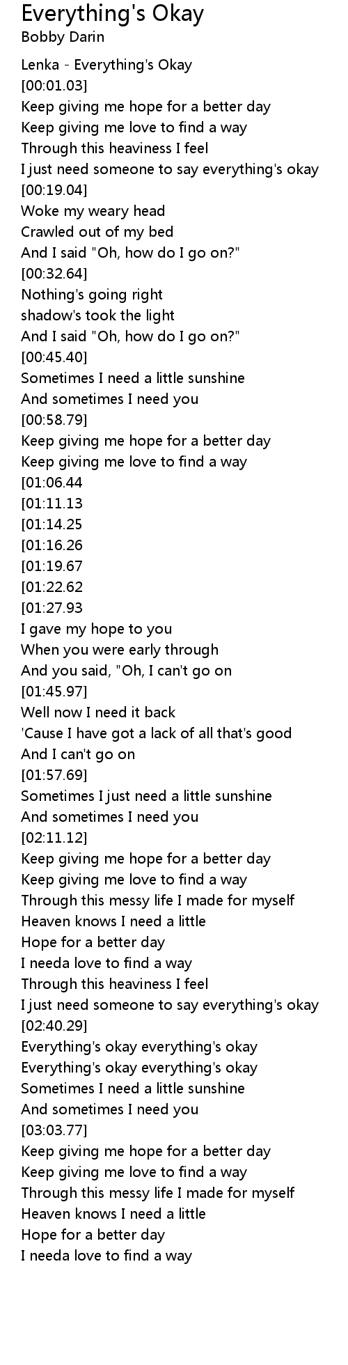 Everything's okay everything's okay |